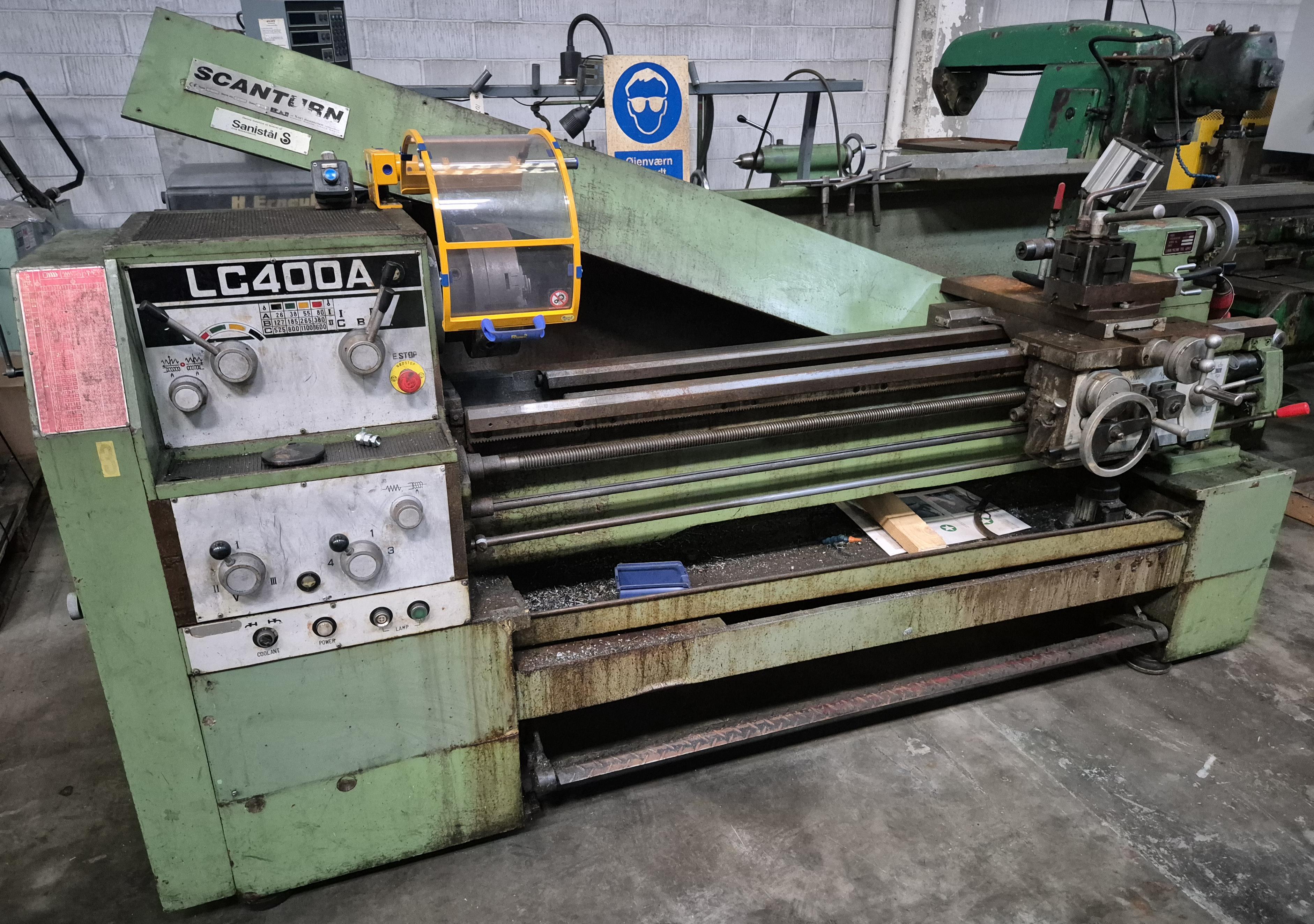 fabrikat Scanturn model LC400A 200 x 1500 mm. 26-1600 o/min. Vangestop, 2 x brille, Ø320 mm kloplan, 60 mm spindel boring, udtagelig bro, centrerpatron skærm med afbryder.