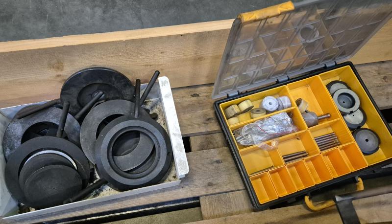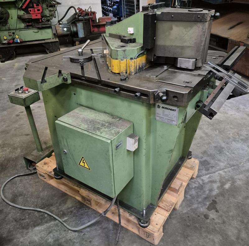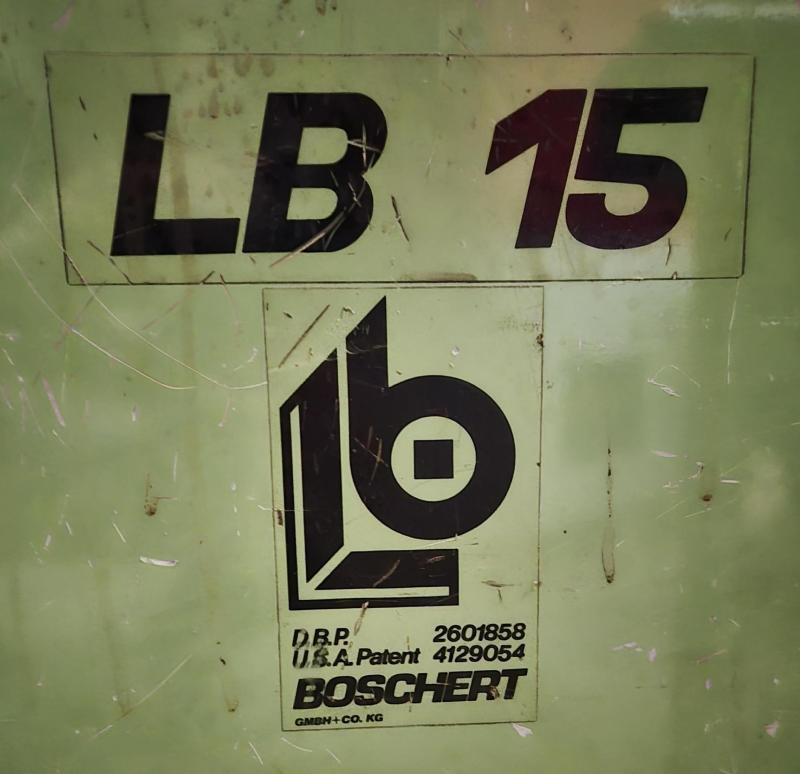 fabrikat Boschert model LB15 KS6/25 både hjørne udklinker og lokkemaskine. Hydraulisk. 225 mm knive. Der medfølger en del stempler og matricer til lokker.