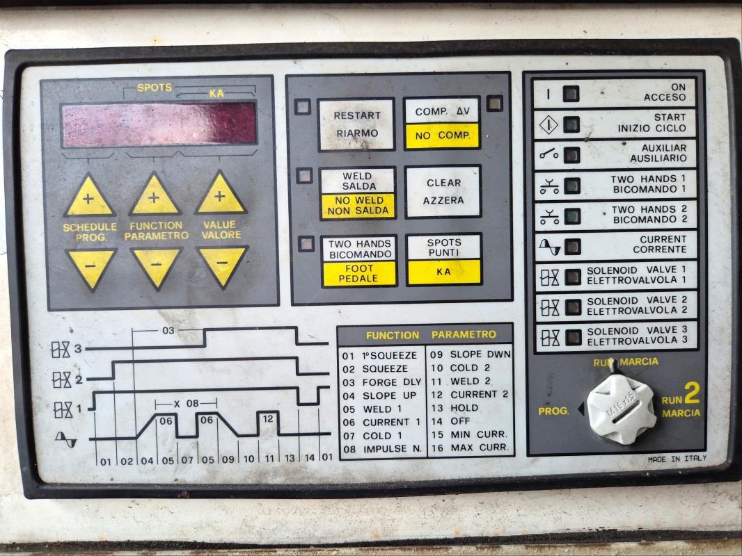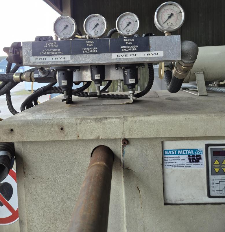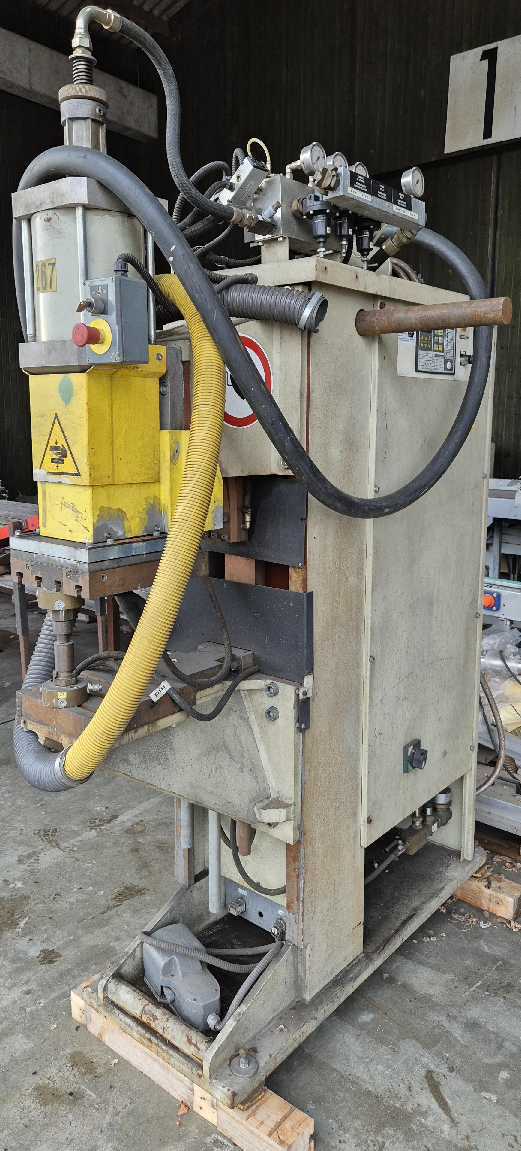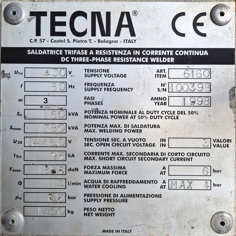 fabrikat Tecna model 6160 160 KVA ved 50% max 780 KVA. Udlæg 500 mm. Køleunit medfølger. Meget stor svejser på 1400 kg!