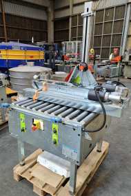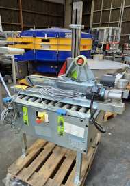 kombineret med krympetunnel, fabrikat Ouest Conditionnement. Svejsebredde 600 mm, højde i tunnel 400 mm, emnehøjde ?. Afstand mellem svejsninger 230 mm. Kontinuerlig bevægelse af transportør. Velegnet til sampak af flasker. Sideindføring. luftcylinder til indskub.