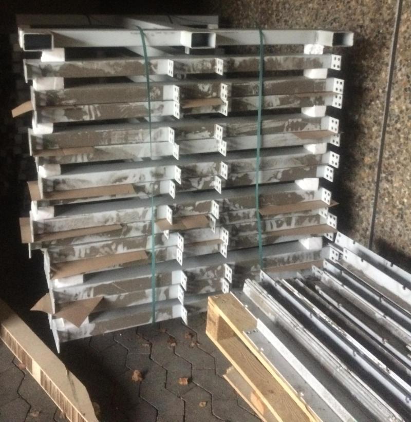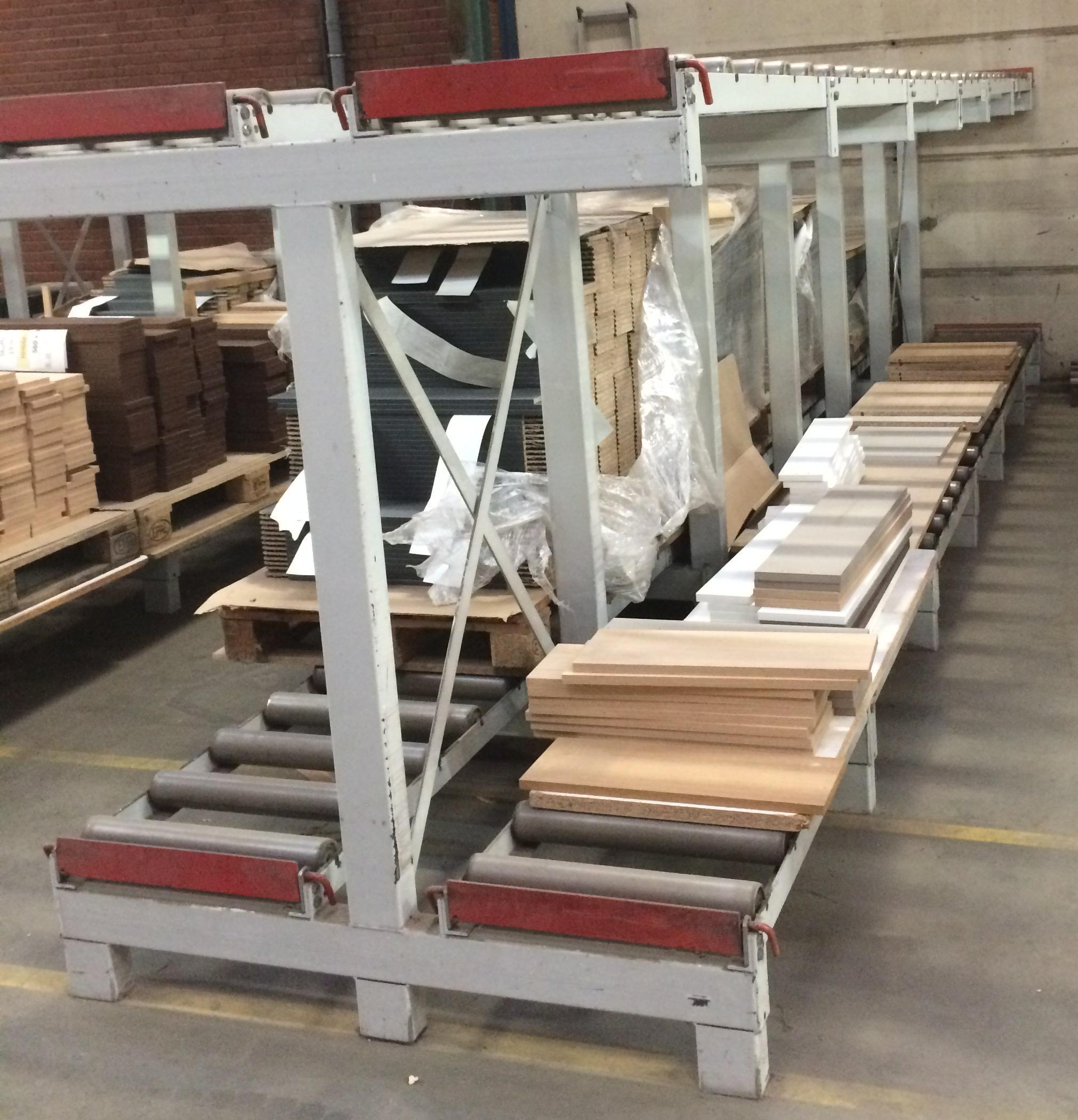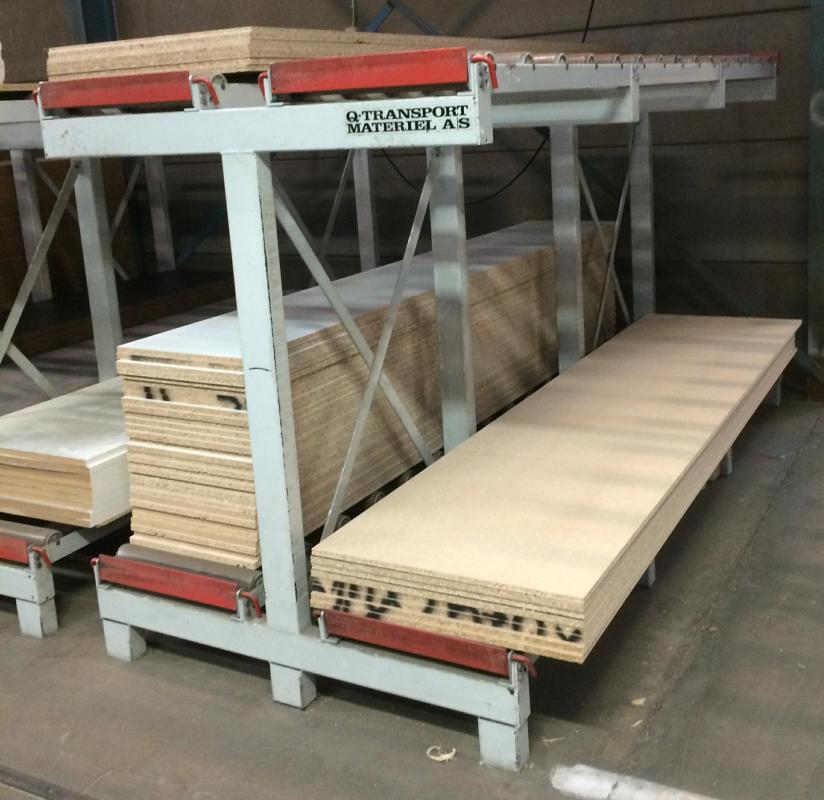 fabrikat Q-Transport dobbeltsidet med rullebaner i 2 lag per side. Cirka 300 mm højde og 1600 mm højde. Stort parti med 85 gavle med 220 meter rullebane... Kan i mindre portioner.