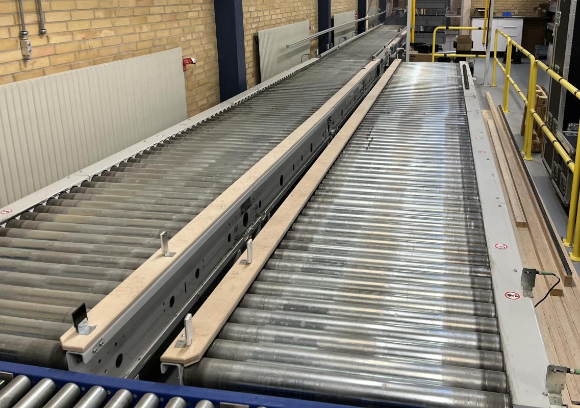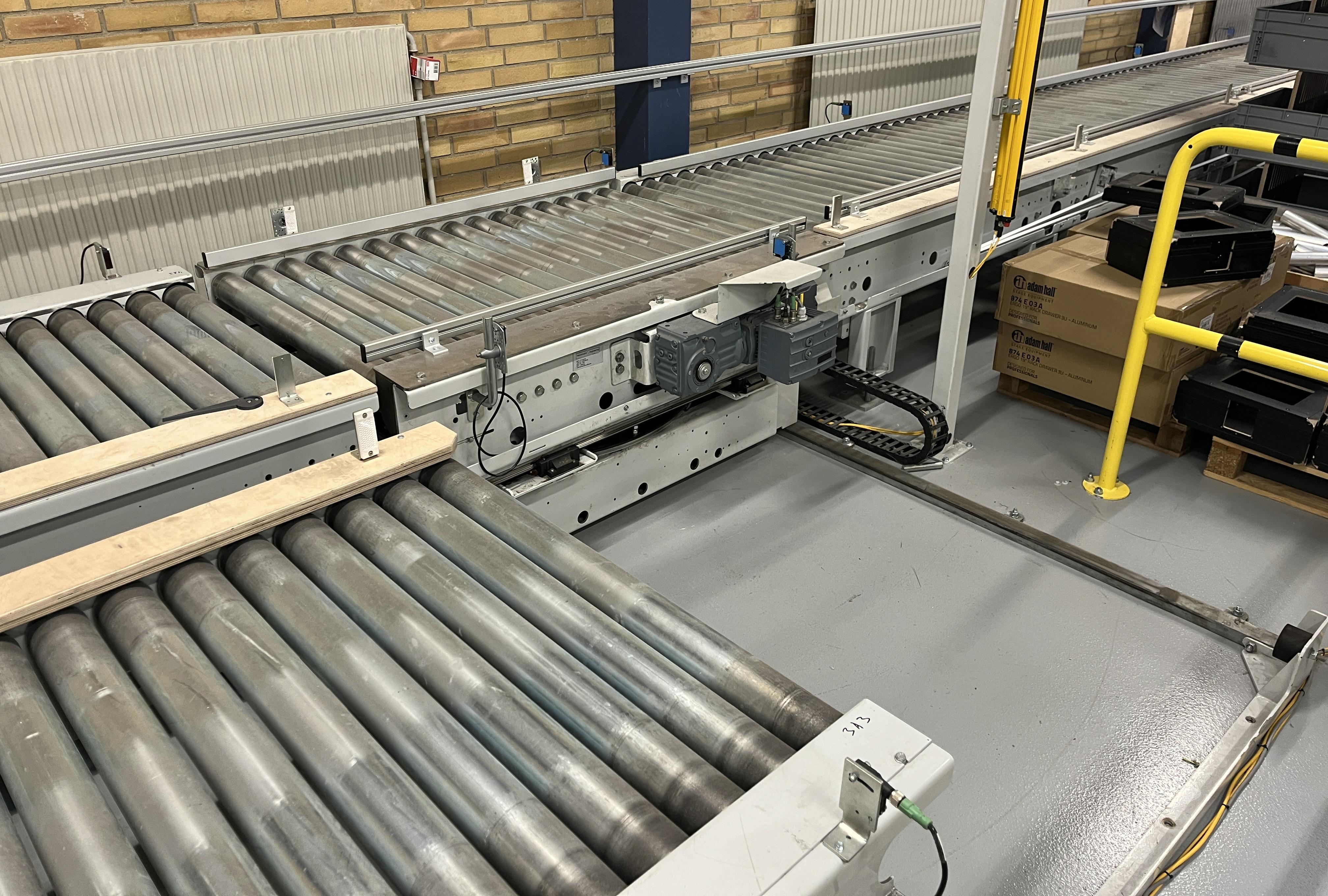 Ø80 x 890 x H 600 mm med CC på 87,5 mm. 1000 kg/M. 16 styk 1,4m 4 styk 2,1m 1 styk tværvogn med drejeskive også 1,4m. Dreven med elmotor på hver enhed.