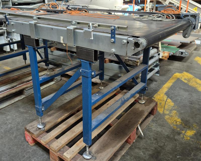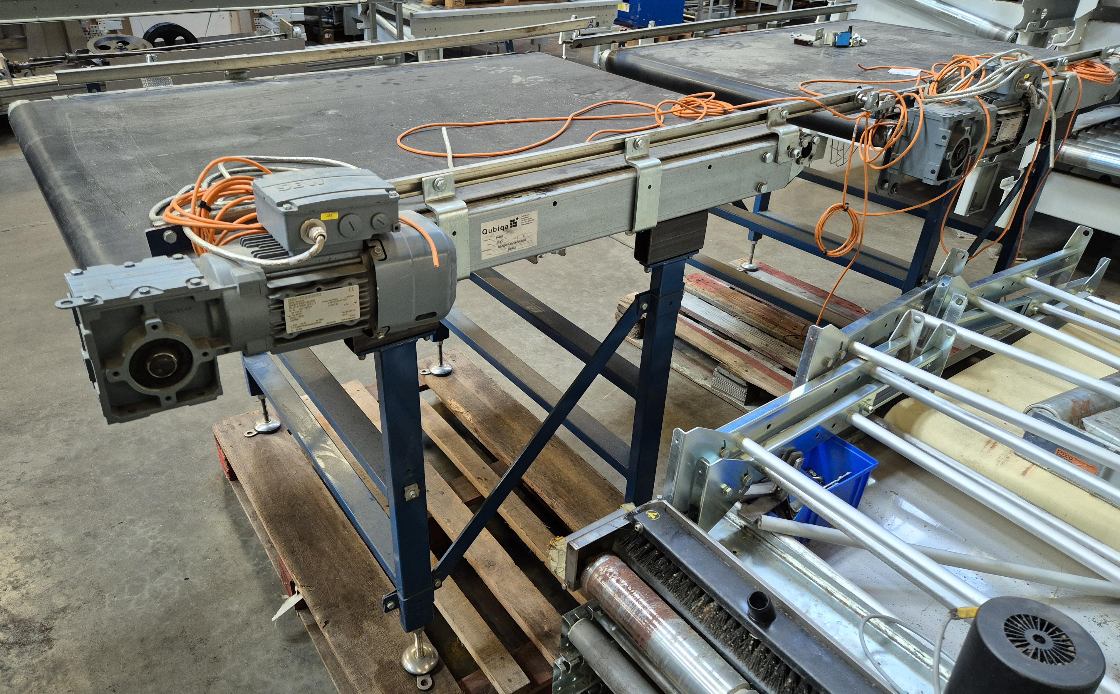 900 x 1200 x H950 mm. Sidestyr. Fabrikat Qubiqa med gearmotor og glat bånd. Flere på lager.
